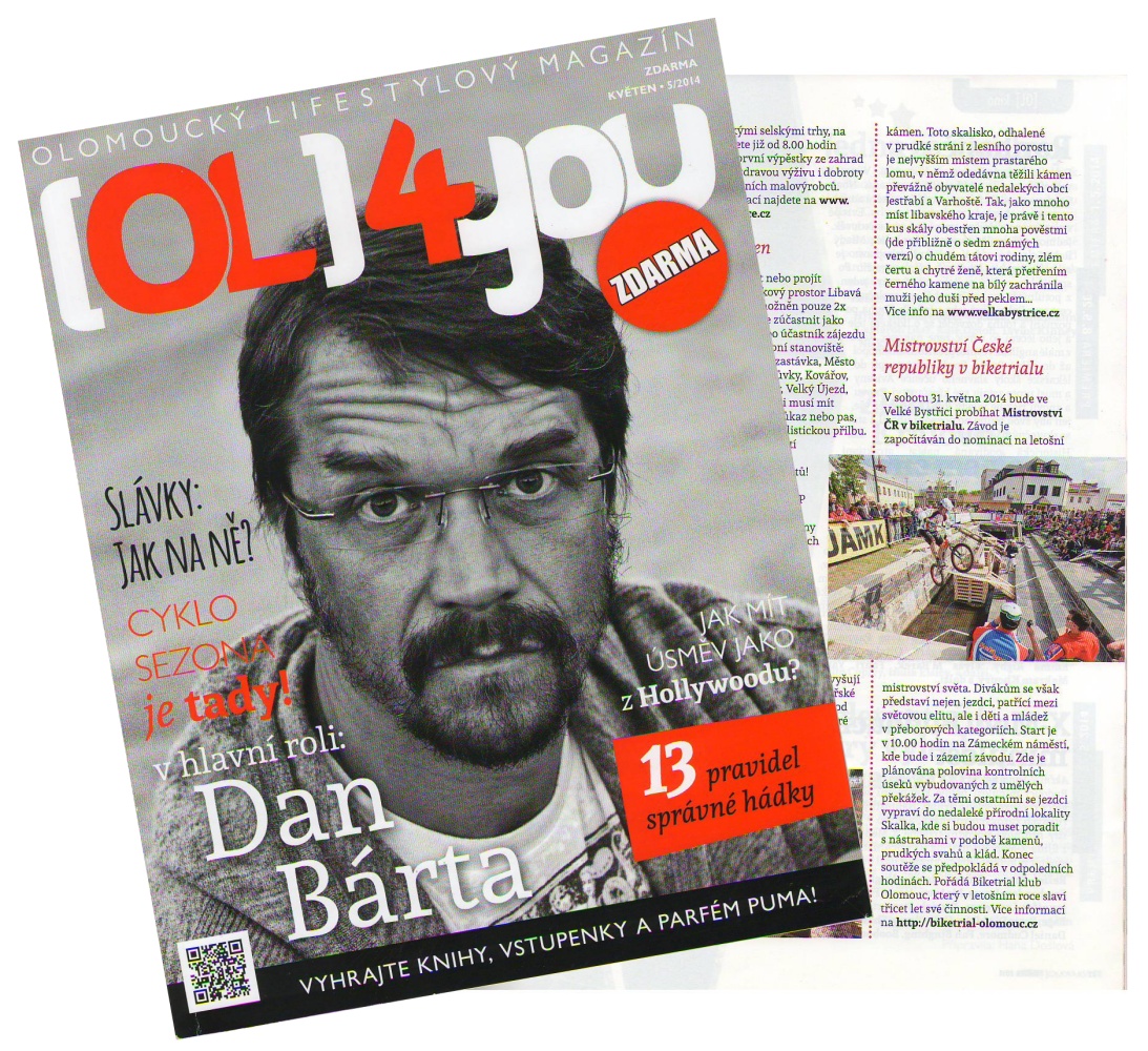 Kdo sledujete Revue od začátku, tak jste asi postřehli, že i když je v tiráži uvedeno, že Revui vydává olomoucký klub jako propagační materiál, tak její obsah se snaží pokrývat dění nejen v Olomouci, ale obecně události v našem sportu v rámci celé republiky. Nejde tedy pouze o propagaci jednoho klubu, ale celého biketrialu. Z toho vyplývá i nabídka pro ostatní kluby: pokud máte zájem, můžeme vám posílat větší počet výtisků, které můžete nabídnout volně třeba ve vaší místní škole, dětském domě, sportovním areálu nebo kdekoliv jinde, kde lze počítat s teoretickým výskytem možných nových zájemců o biketrial. A stejně, jako v minulých číslech byly představeny kluby z Ostravy nebo z Brna, rádi dáme prostor i vám.